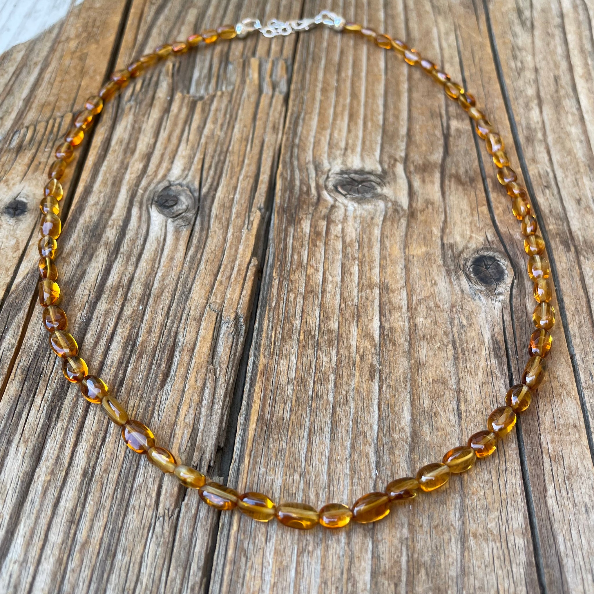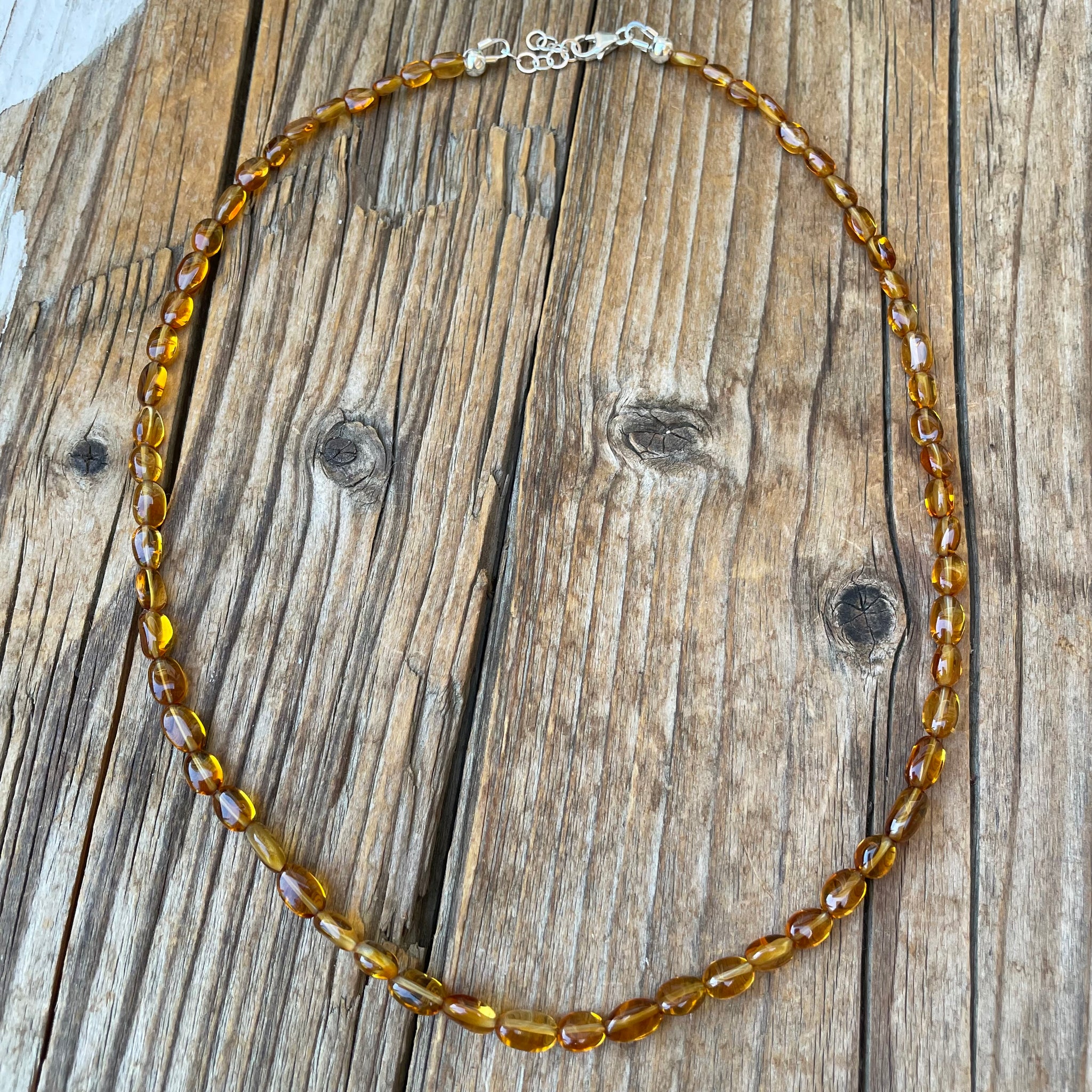 This single strand necklace has been created with stunning high end golden Citrine oval beads and sterling silver components. These stones are so rich, beautiful and clear! This piece sits at about 17” with the sterling chain extender adding an inch. Absolutely enough to wear solo or layer up with other favorites. The clasp is a small sterling silver lobster clasp with a sterling silver chain extender.