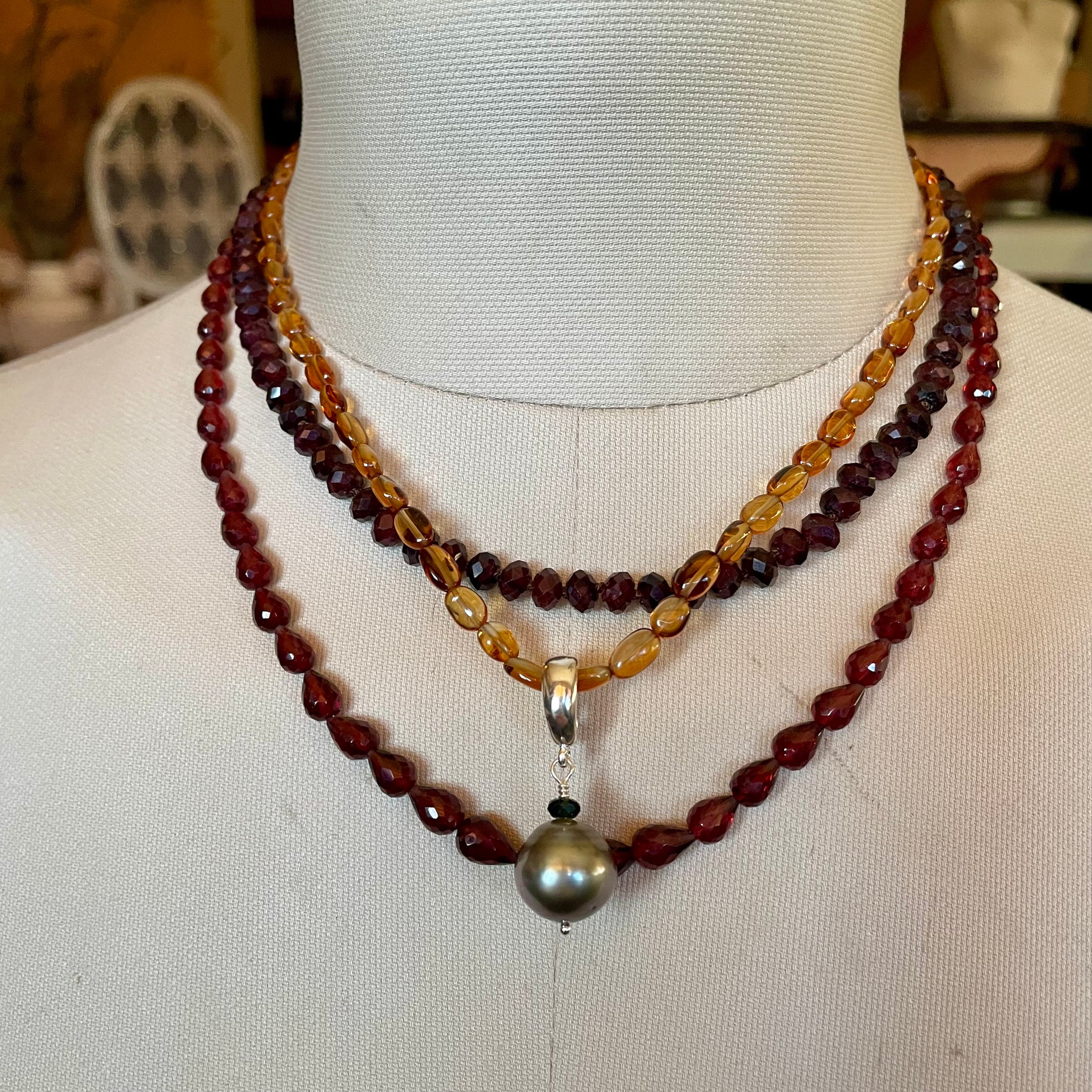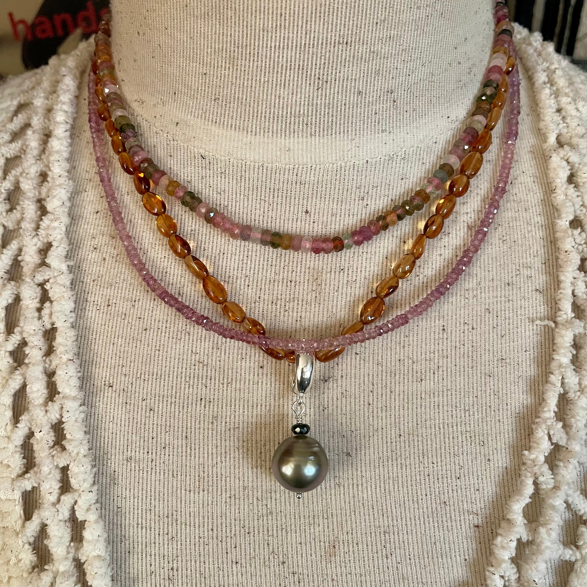 I have added a beautiful large Tahitian pearl with a rainbow luster and a removable sterling clasp in the photos, that can easily be used on pearls or other beads, sold separately.